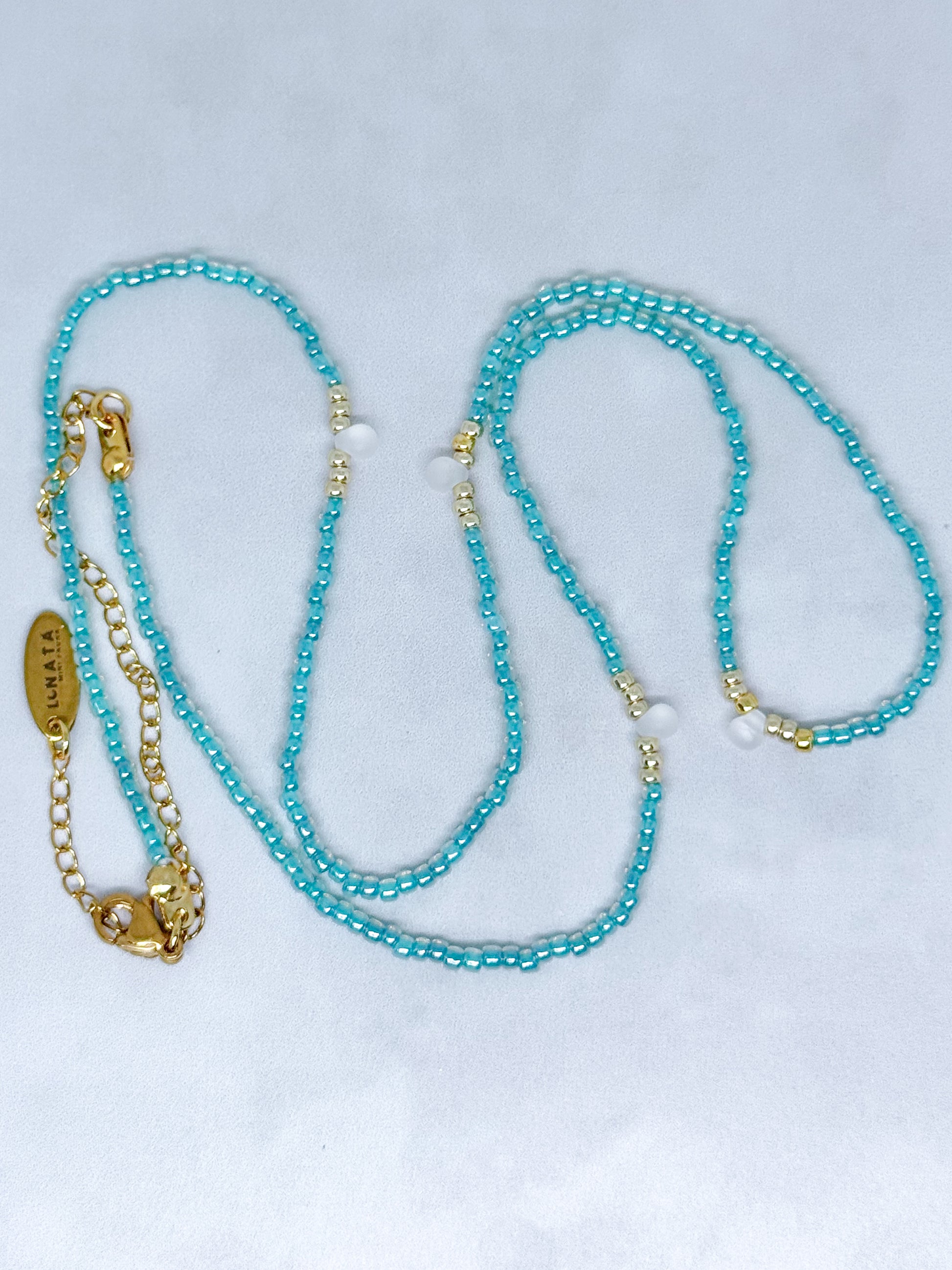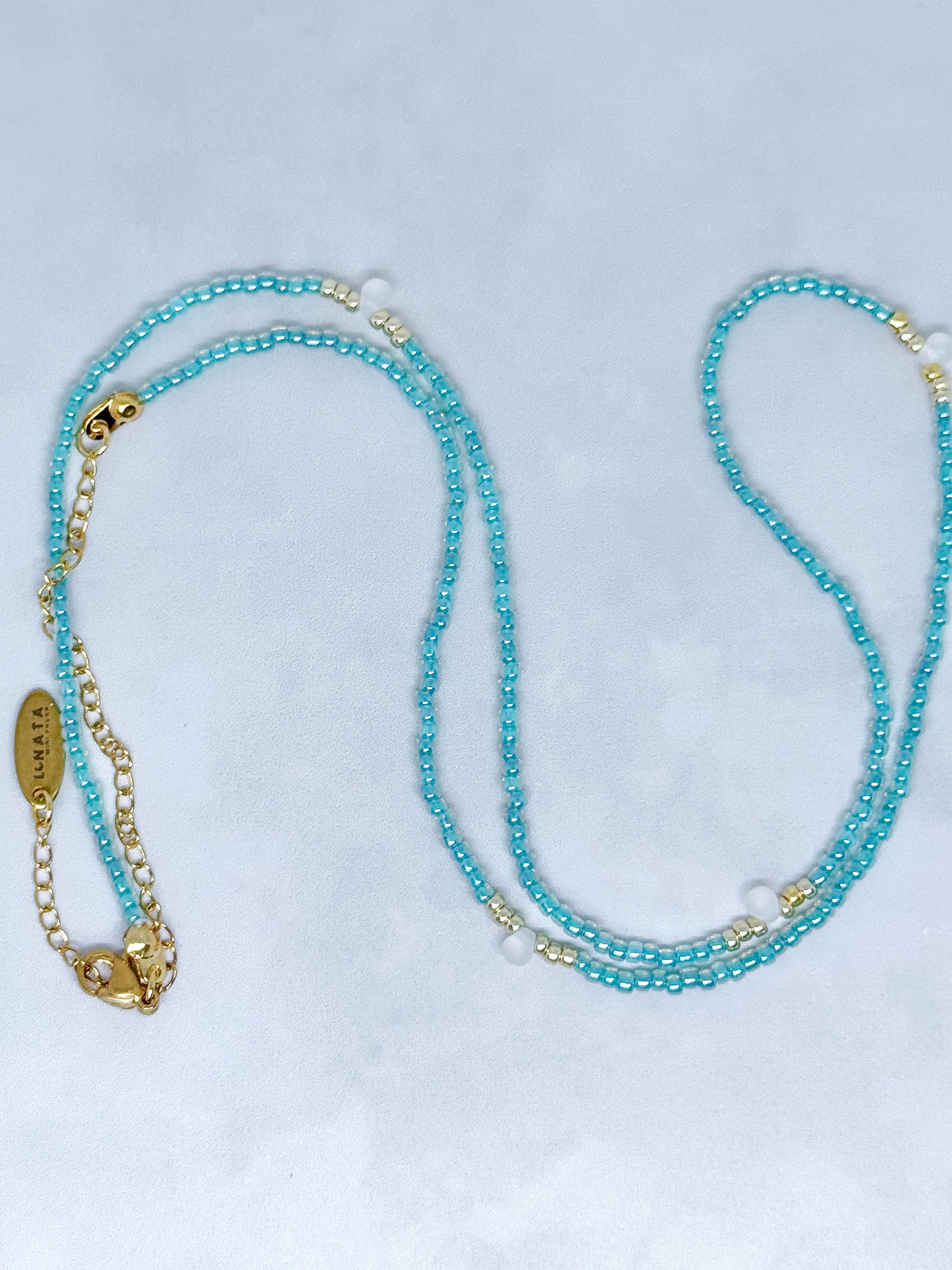 Llevar este collar es como permitirte llorar de alivio, de ternura, de verdad. Es una caricia al corazón sensible. Agua de Cielo fluye por dentro, abriendo espacio. Y el dorado te recuerda que esa apertura te deja más tú. Gota Lunar lo corona: no es tristeza… es alma en su forma más pura.